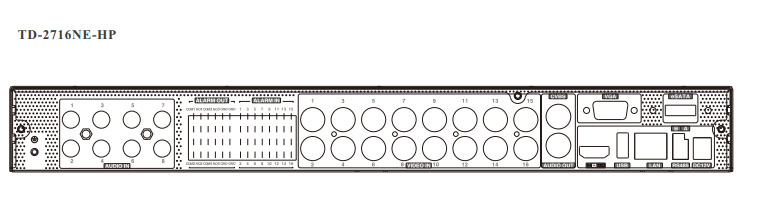 Videograbador 5en1 DVR | 8MP 16CH + 8IP | 2HDD VCA | Alarma 16/4 Audio 8/1 | 16CH TVI/AHD/CVI/WD1 + 8CH IP 8MP@30fps (total 24CH) | Funciones inteligentes: movimiento, | perímetro. | Reproducción simultánea 16CH. HDMI, BNC | 4K@15fps, 5MP@20fps, 4MP@30fps. | E/S Audio 8/1 | Alarma: Entrada 16CH, Salida 4CH. Ancho banda 32Mbps/96Mbps | HDD SATA× 2 | , hasta 10TB, E‑SATA× 1