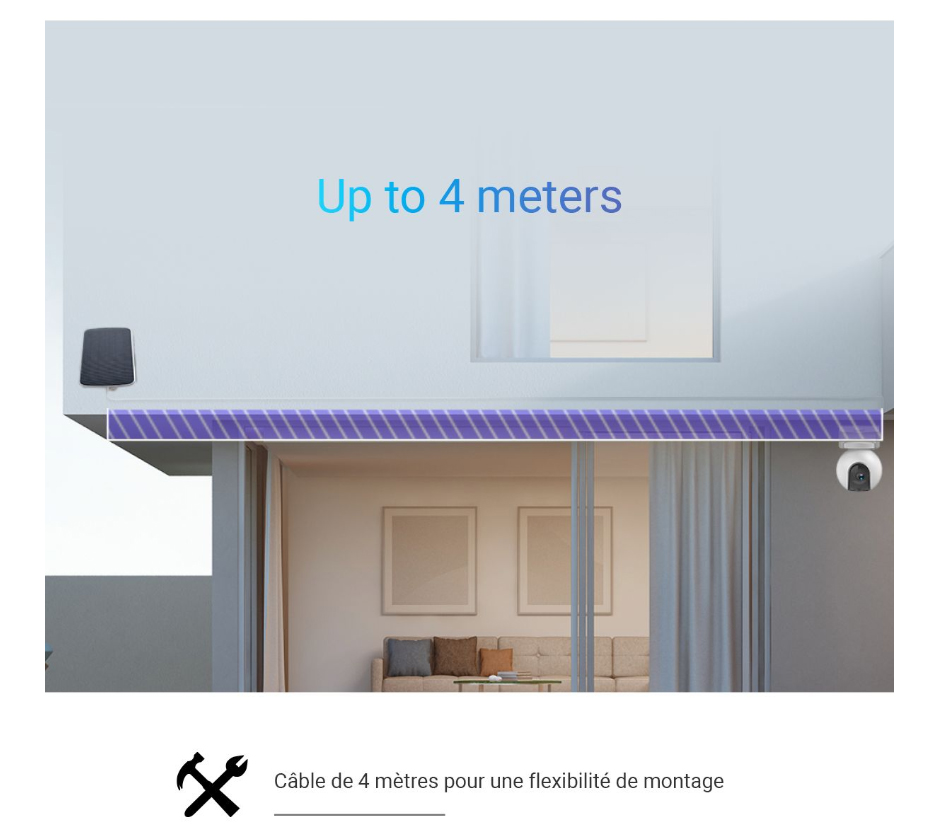 Kit Cámara y Panel Solar EB8 4G 2K | Cámara 4G con batería y rotación | 360° | GPS. | Resolución 2K. Vista | panorámica. Exterior | Batería 10.400 mAh. Detección movimiento. | Audio bidireccional | Visión nocturna | en color. Alarma | sirena/luz | Panel solar E- 6,18. Cable 4m. | Exterior